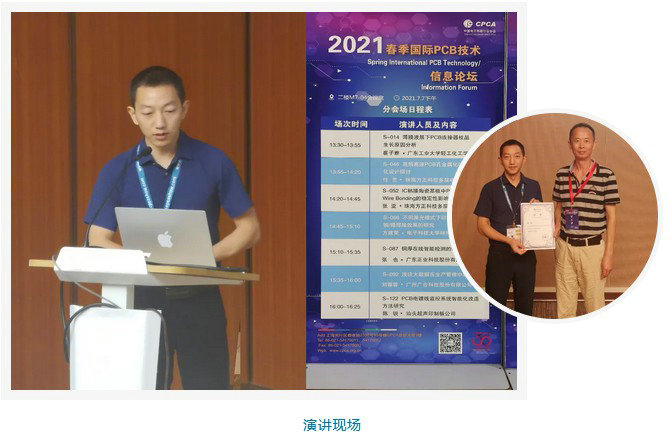 作為電子行業技術交流的盛會,由中國電子電路行業協會(CPCA)主辦,CPCA科學技術委員會承辦的“2021春季國際PCB技術/信息論壇”于2021年7月6日-7日在上海召開。正業科技積極參與,進行了《銅厚在線智能檢測的研究和應用》的演講分享。